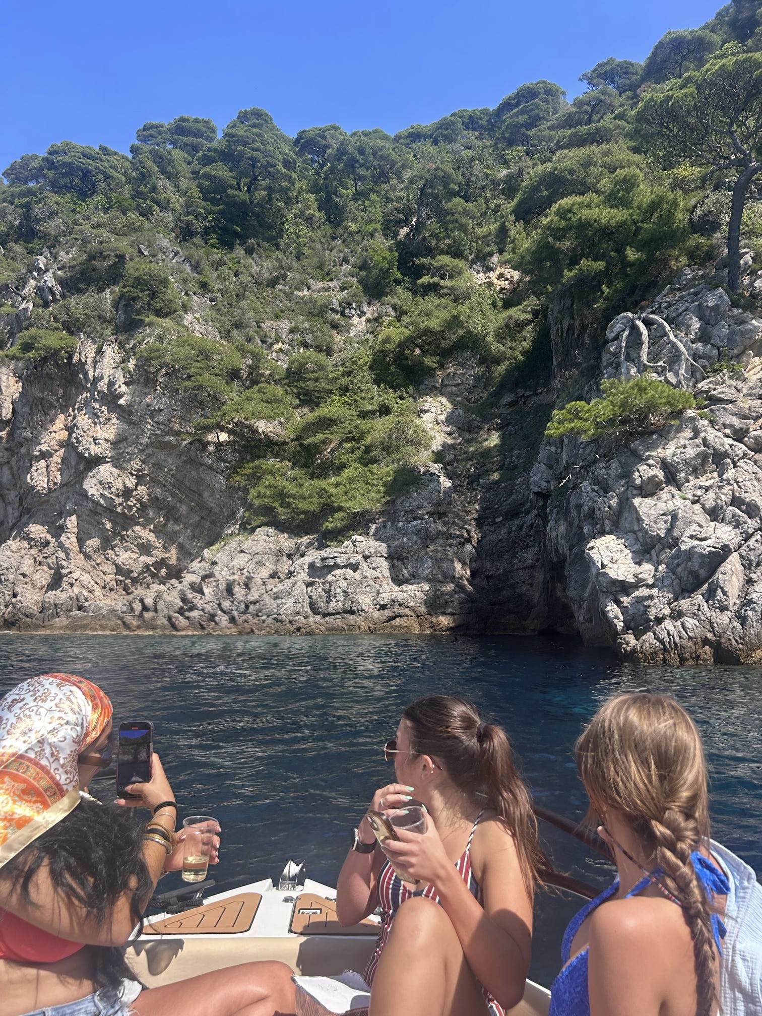 Wednesday, everyone was here for class. It was a nice day, and after our studies a group of us rented a boat. The boat took us to underwater caves that we could swim in and we toured around the southern coast of Dubrovnik. Our last stop on the boat was at a small island where we could go on land and eat a quick lunch. After this, we went back to the dorms to move our things to the new hotel. This one was in the beach town of Dubrovnik, and a little farther from the school.