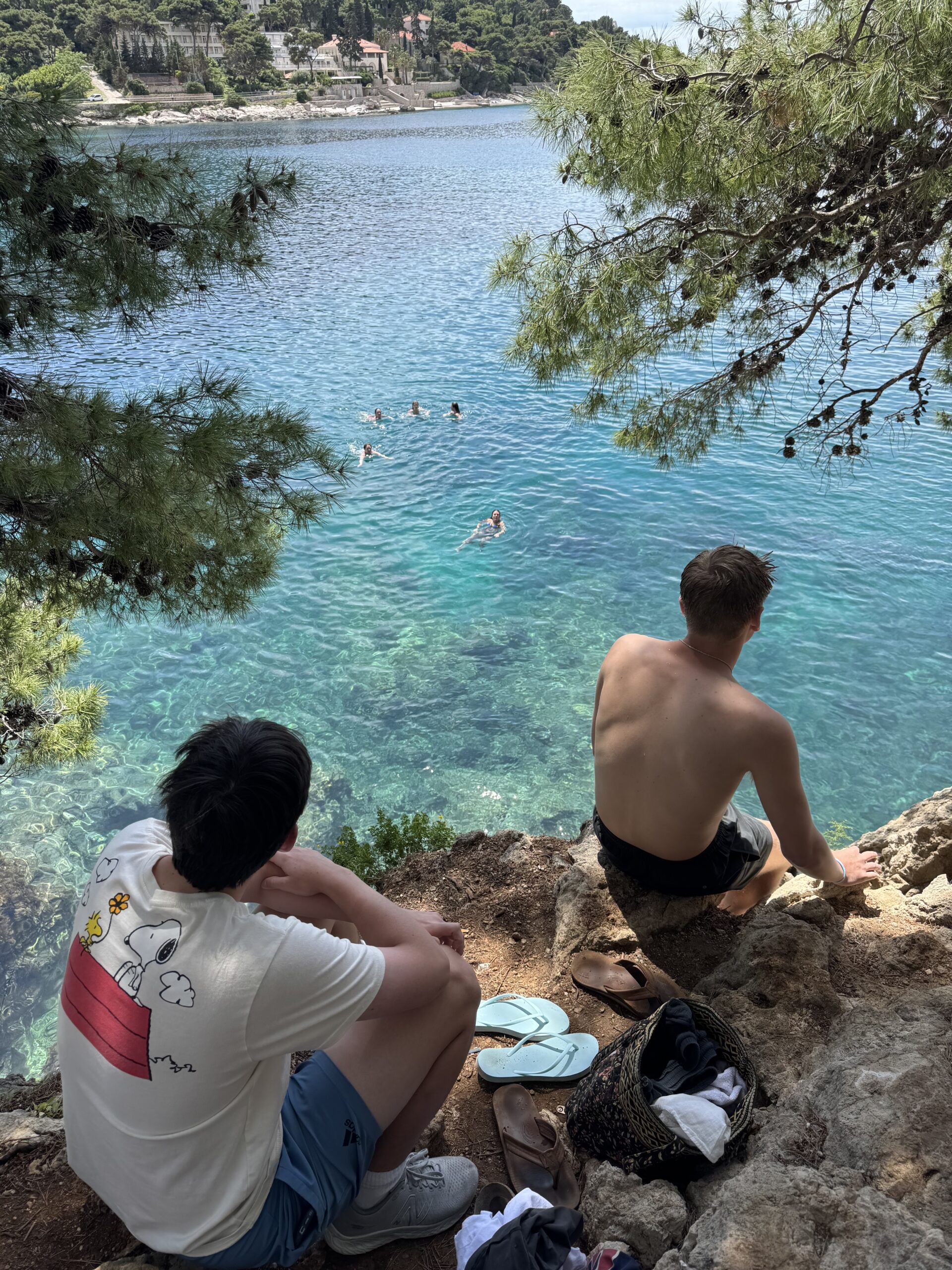 Our trip started with some chaos, as our flight plans were severely impacted by the Newark Airport air traffic control shortage. We had to make several last-minute flight changes and ended up on a flight from Houston to London, then to Munich, then to Dubrovnik! After a long day of travel, we arrived at “Akademis Academia” , a dormitory in Dubrovnik. We had a welcome dinner that night with our group and our professors. My two friends who joined me on the flight to London, their luggage was delayed by a whole day, so I had to loan them some clothes to wear.